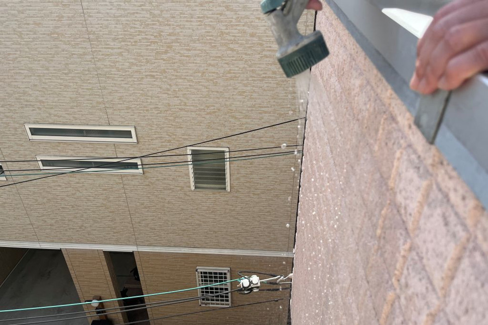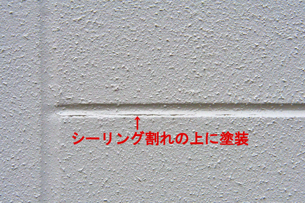 施主様からすると良心的な塗装店に見えるそうですが、写真のようにシーリング部が割れている上に塗装していたり、ほんの一部だけ目地のシーリングをしているような工事では、本来防水性を高める為の工事が本末転倒になります。