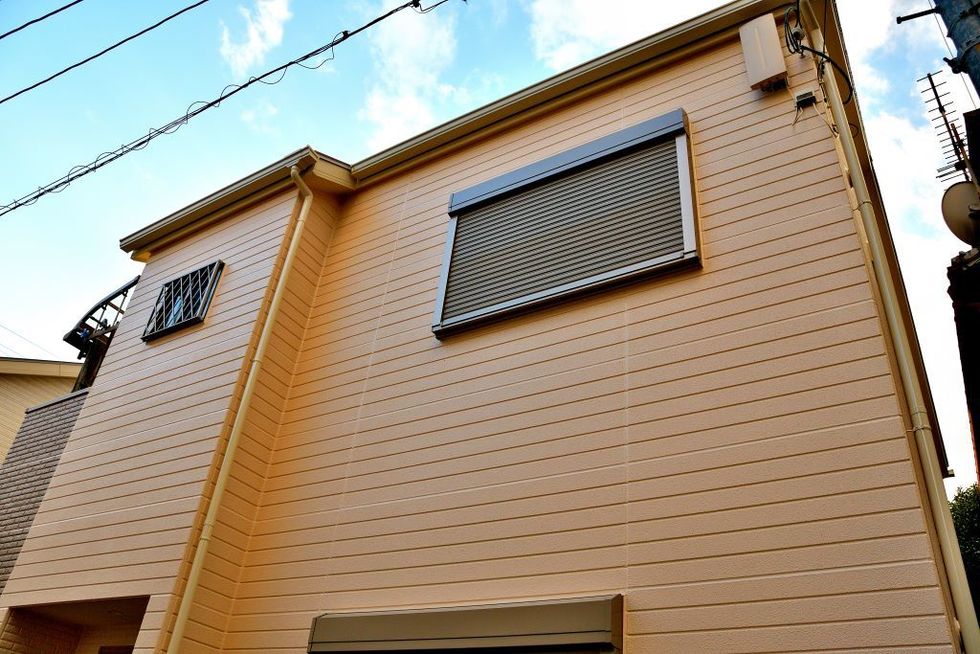 西宮市で木造2階戸建て住宅のパワーボードの外壁塗装工事の施工例です。