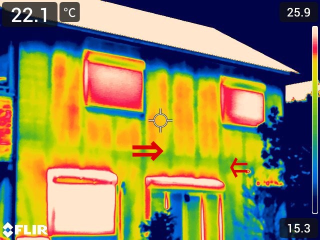 サーモグラフィーカメラによる赤外線診断は、建物の熱伝導などによる温度の違いを読み取る調査です。