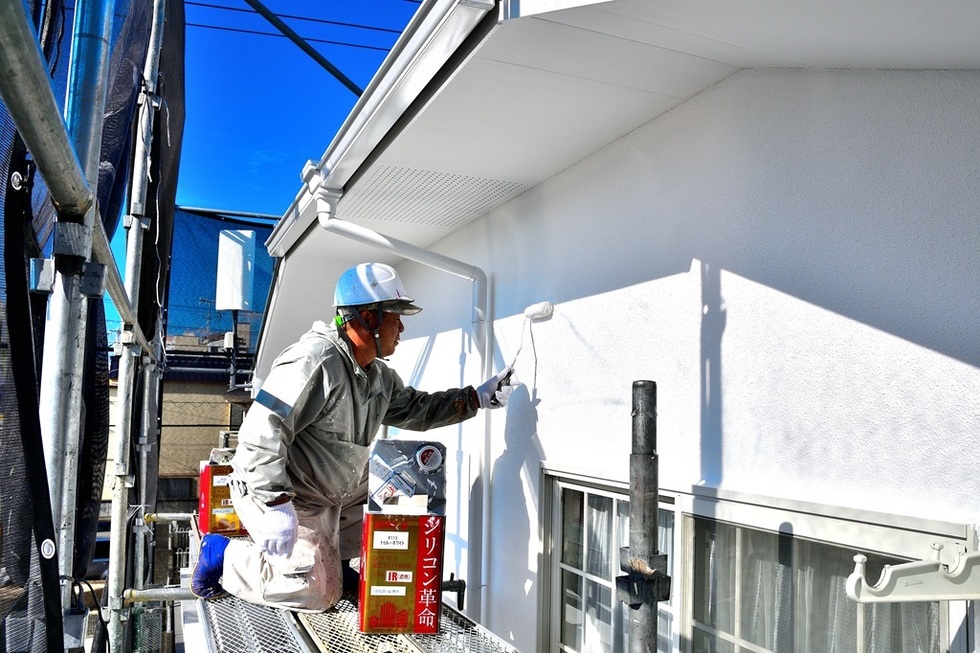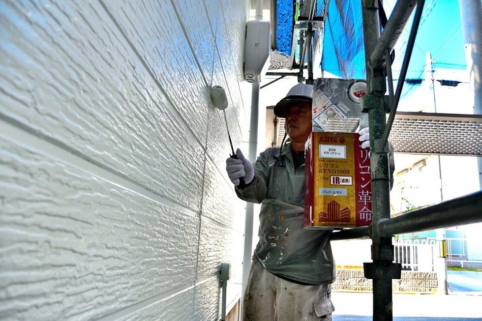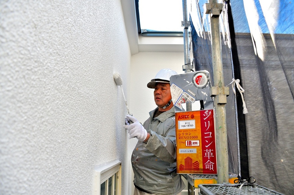 外壁にはアステックペイントの遮熱シリコンREVOを塗装しています。
