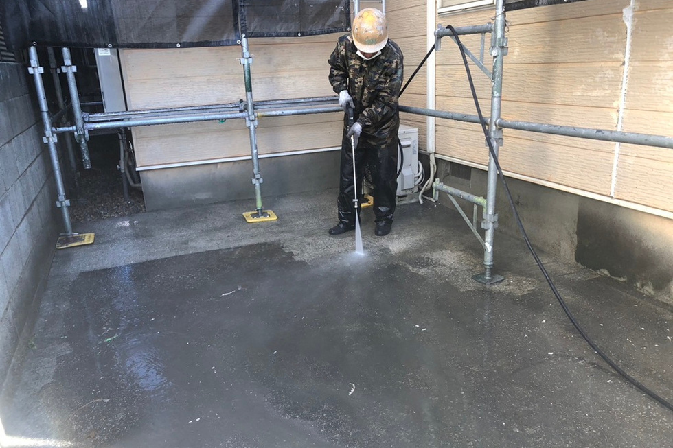 外壁についたホコリやコケ、汚れなどを綺麗に洗い流します。