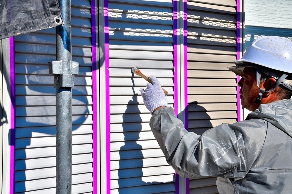 サイディング目地や窓周り、入隅、貫通部などのシーリング改修には高耐候性のオートンイクシードで改修しています。